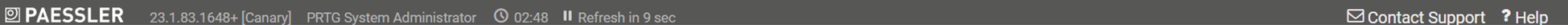This area shows information about the version of PRTG, the logged in user account, and the time (depending on the time zone settings for the logged in user).