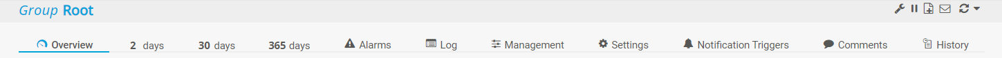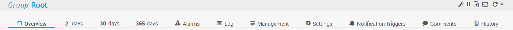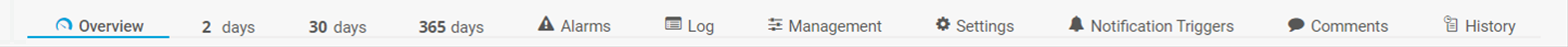 Via tabs, you can navigate to the various subpages of an object, for example, to its monitoring data or settings.