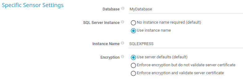 - Process data table: Read and analyze the data table. If you select this option, the sensor counts rows with SELECT statements as well.
