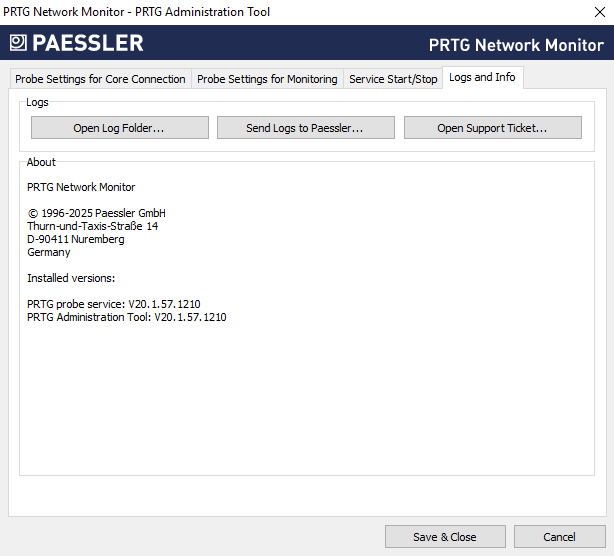 If you open a support ticket, the Paessler support team might ask you to send logs for further analysis.